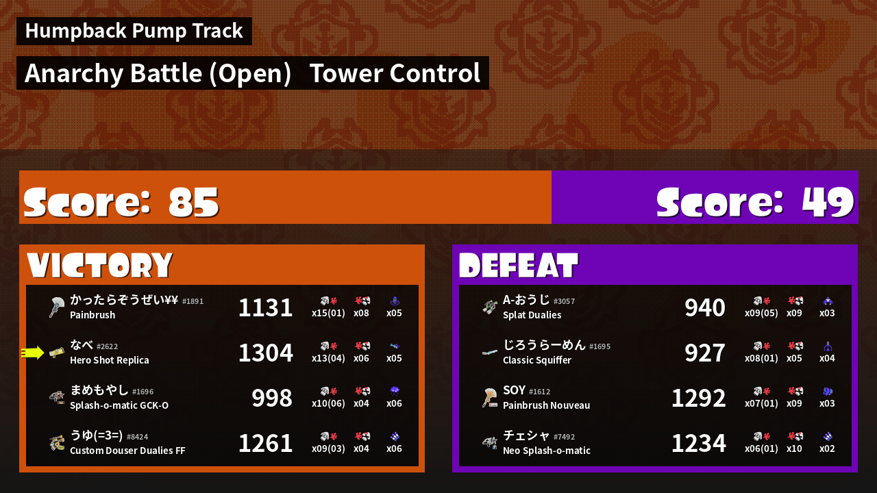 | Mode | Tower Control - Anarchy Battle (Open) |