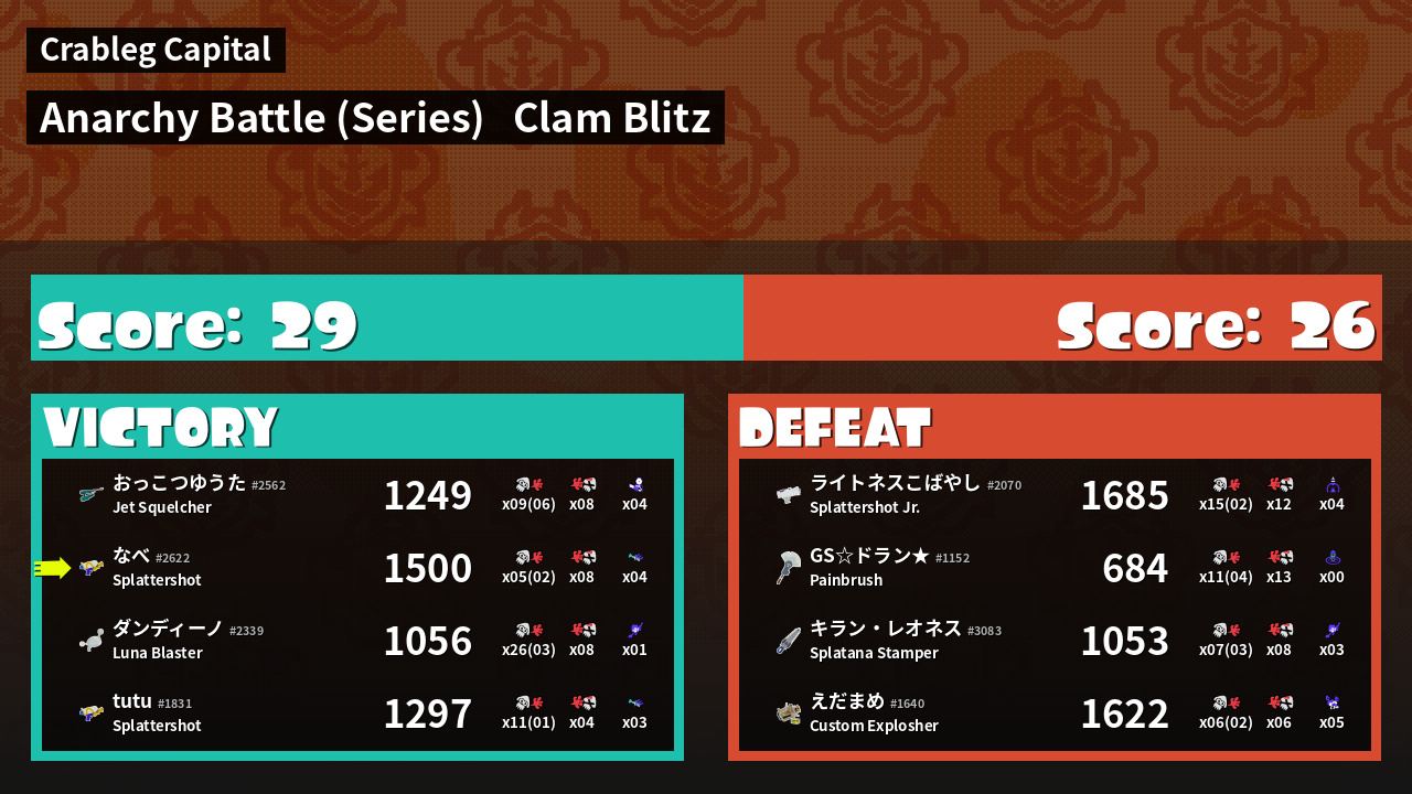 | Mode | Clam Blitz - Anarchy Battle (Series) | ||