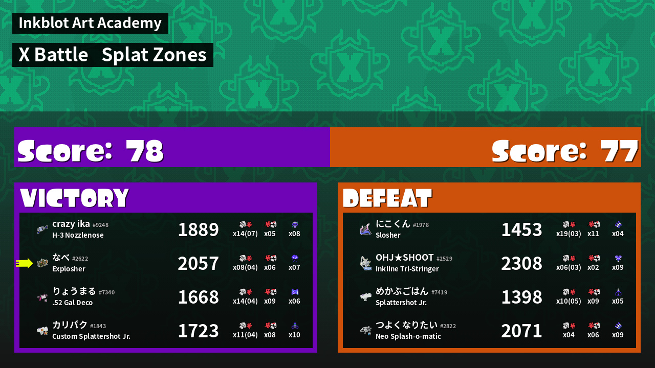 | Medals | #1 Splat Zone Inker #1 Turf Inker #1 Super Jump Spot | ||