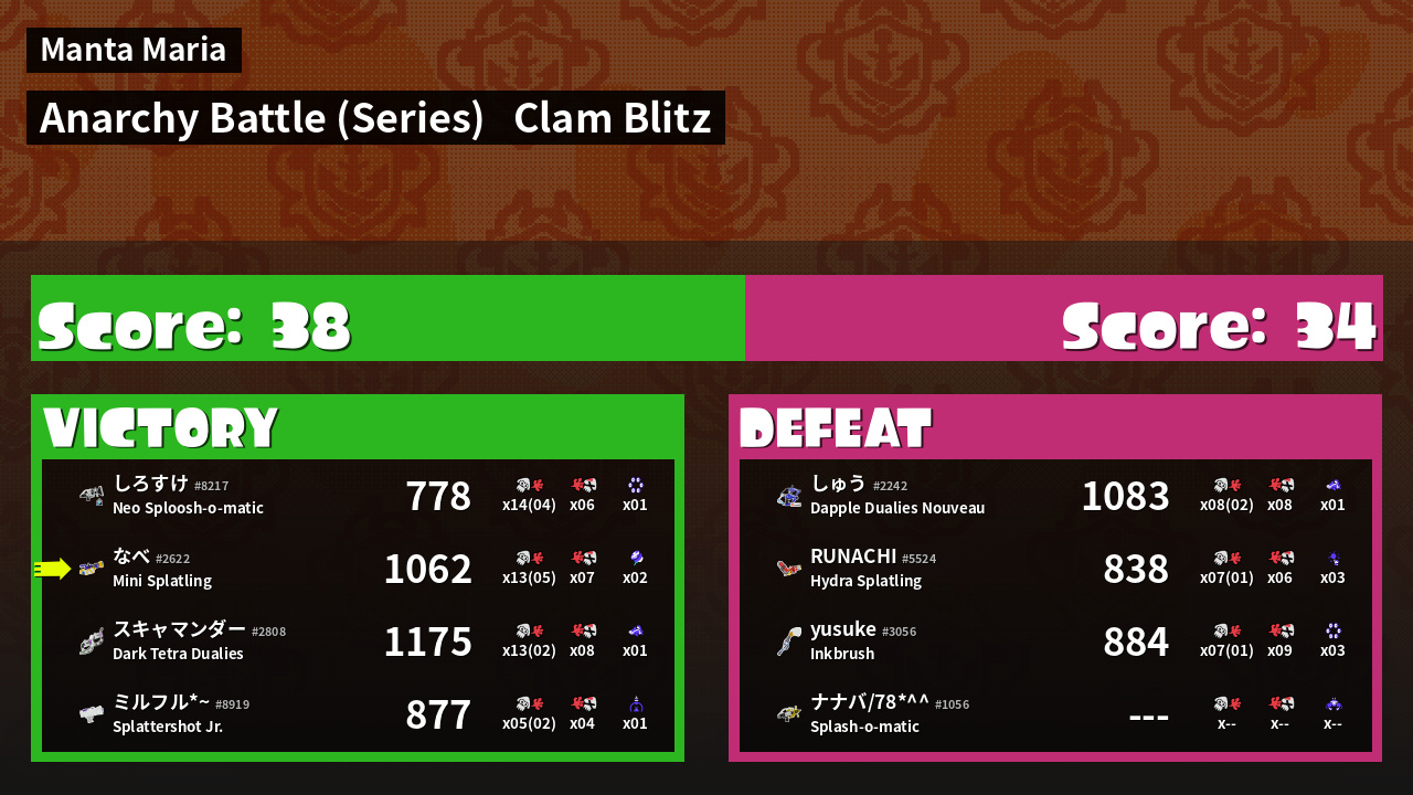 | Mode | Clam Blitz - Anarchy Battle (Series) | ||