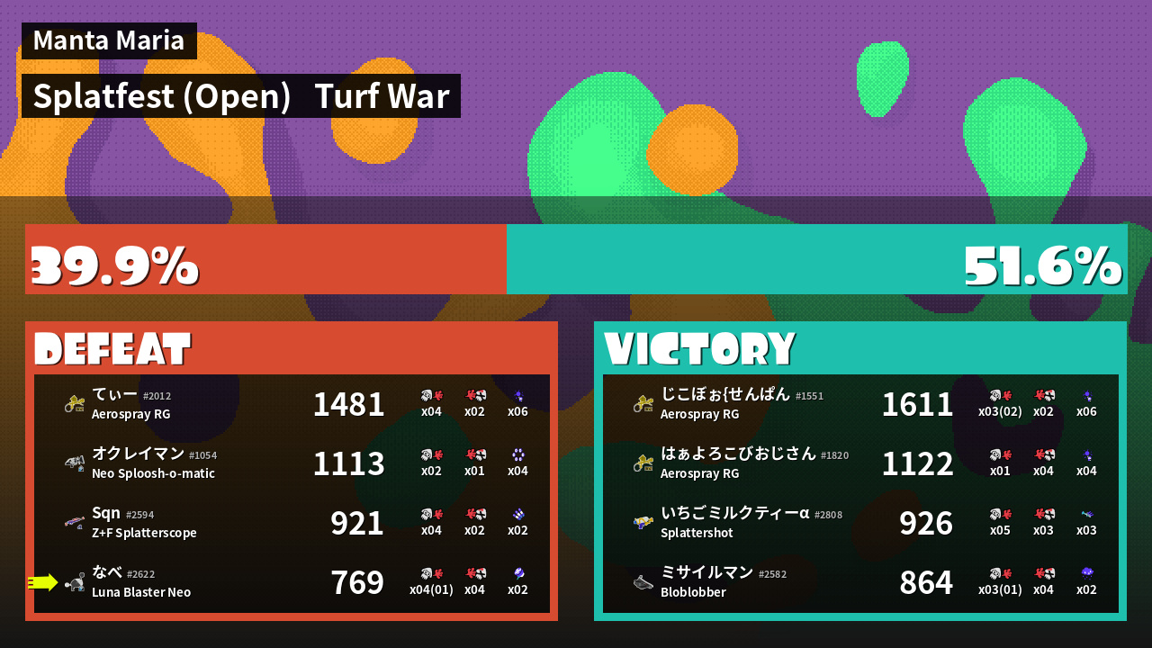 | Medals | #1 Overall Splatter #1 Popular Target #1 Splat Assister | ||
