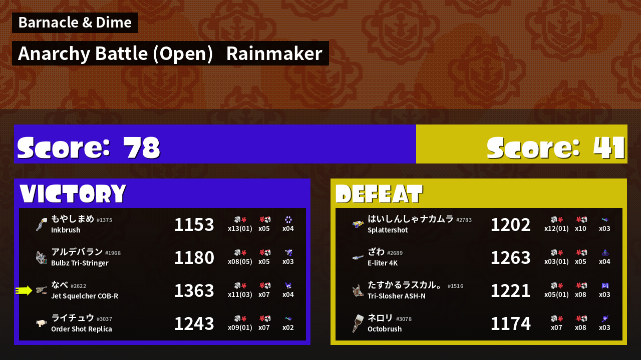 | Mode | Rainmaker - Anarchy Battle (Open) | ||