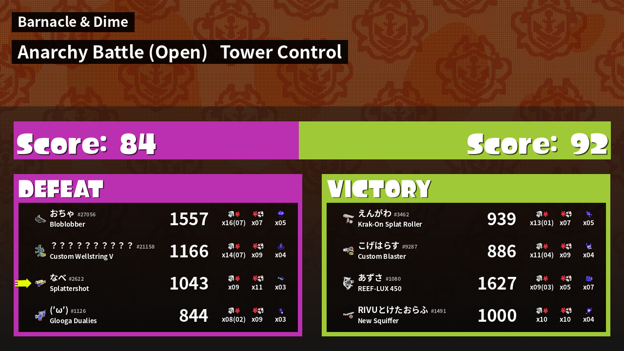 | Mode | Tower Control - Anarchy Battle (Open) | ||