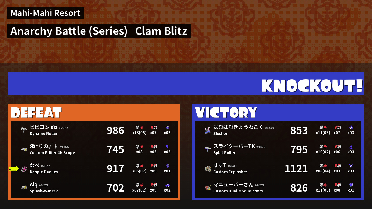 | Mode | Clam Blitz - Anarchy Battle (Series) | ||