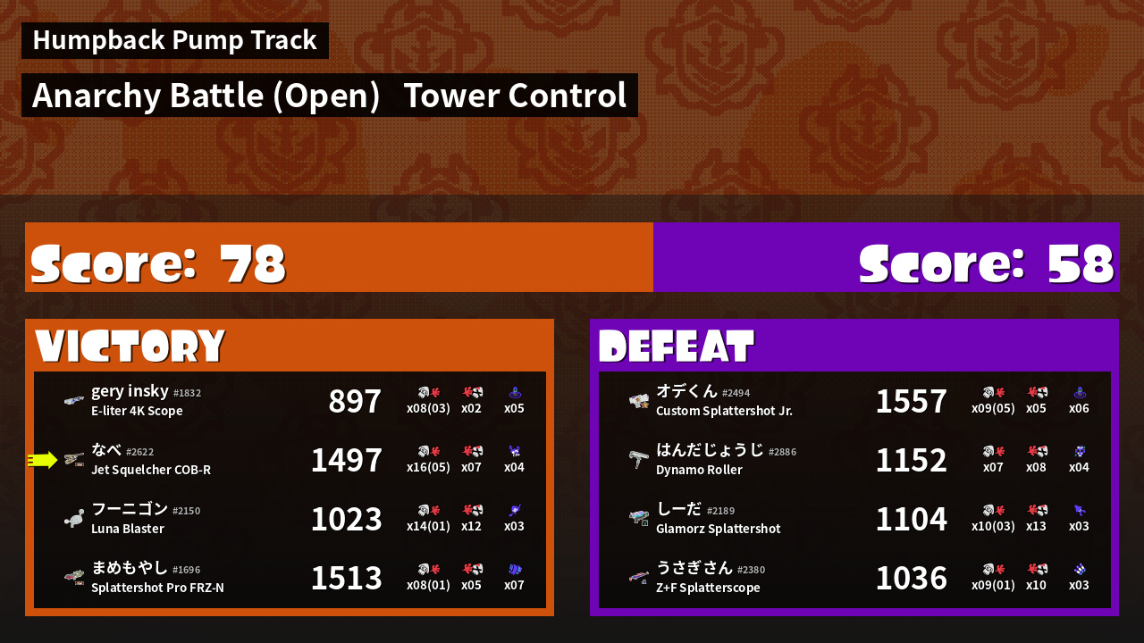 | Mode | Tower Control - Anarchy Battle (Open) | ||