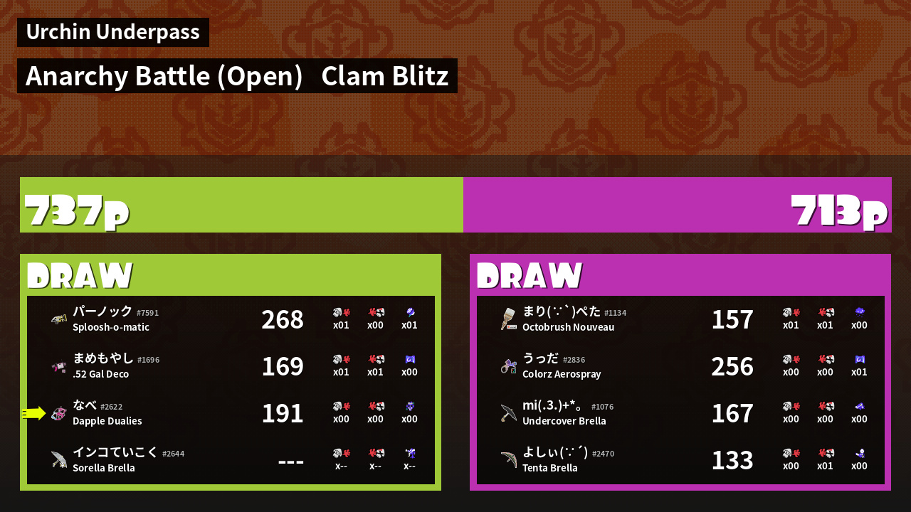 | Mode | Clam Blitz - Anarchy Battle (Open) |