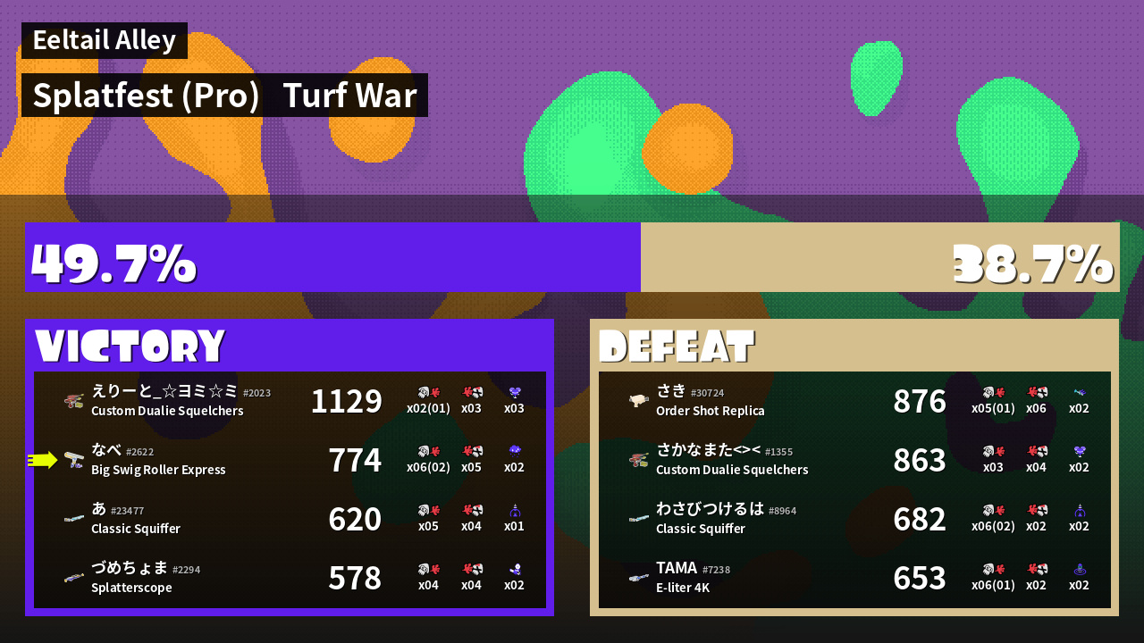 | Mode | Turf War - Splatfest (Pro) | ||