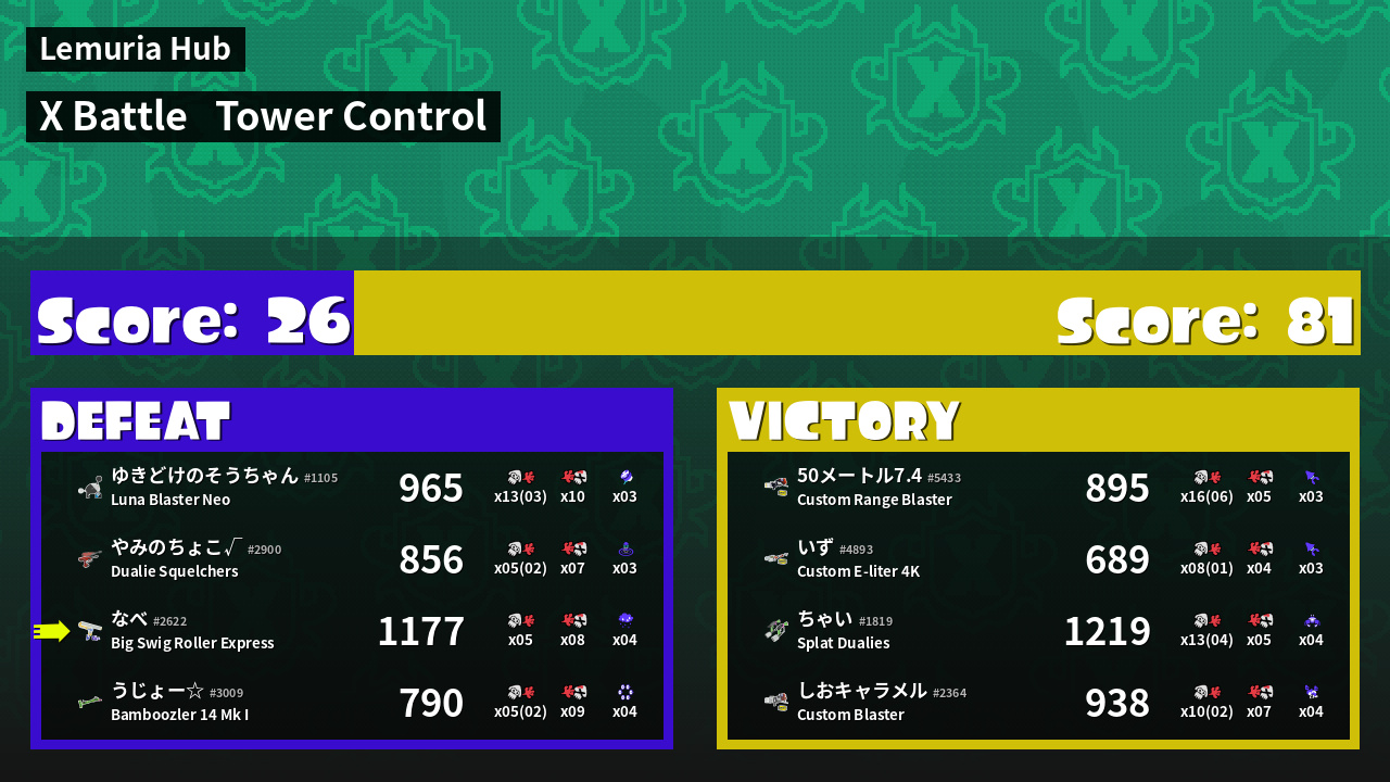 | Mode | Tower Control - X Battle | ||