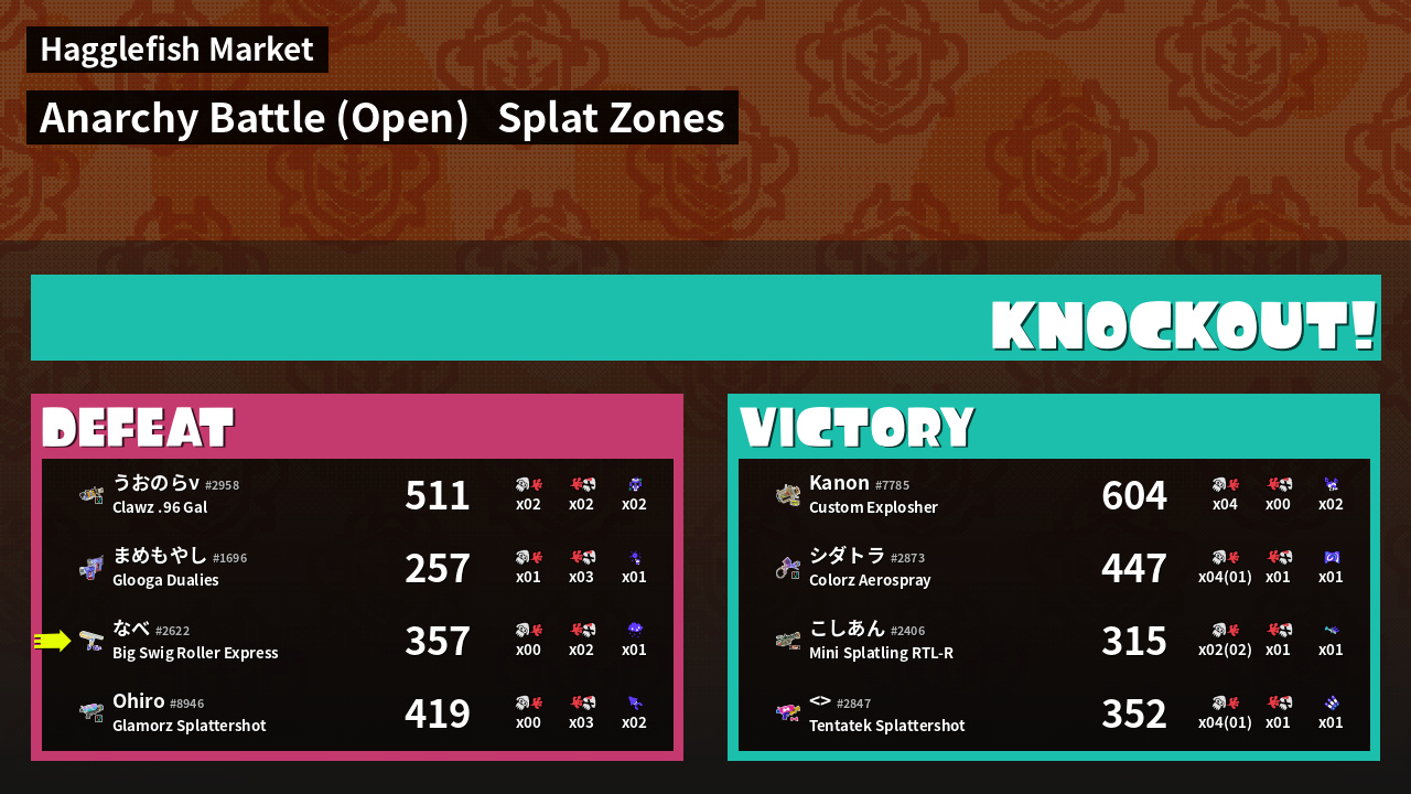 | Mode | Splat Zones - Anarchy Battle (Open) |