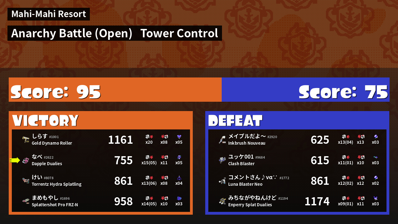 | Mode | Tower Control - Anarchy Battle (Open) |