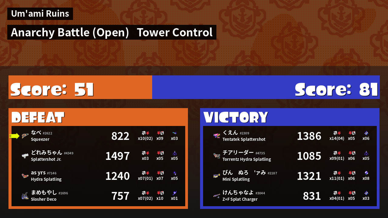 | Mode | Tower Control - Anarchy Battle (Open) |