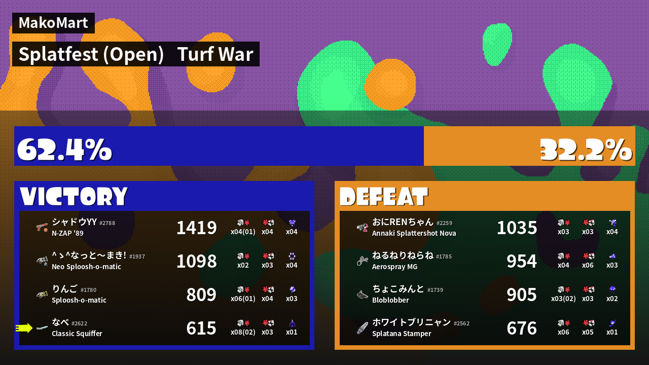 | Medals | #1 Overall Splatter #1 Popular Target #1 Enemy Splatter | ||