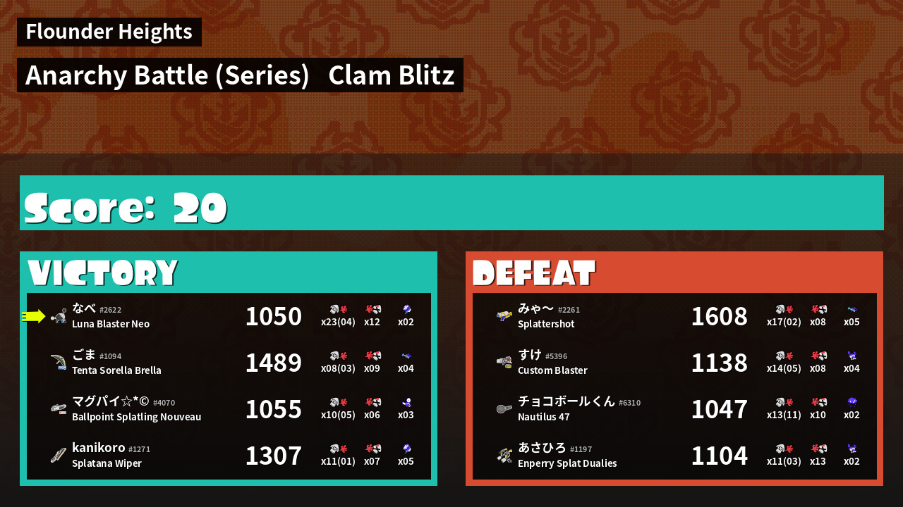 | Mode | Clam Blitz - Anarchy Battle (Series) | ||
