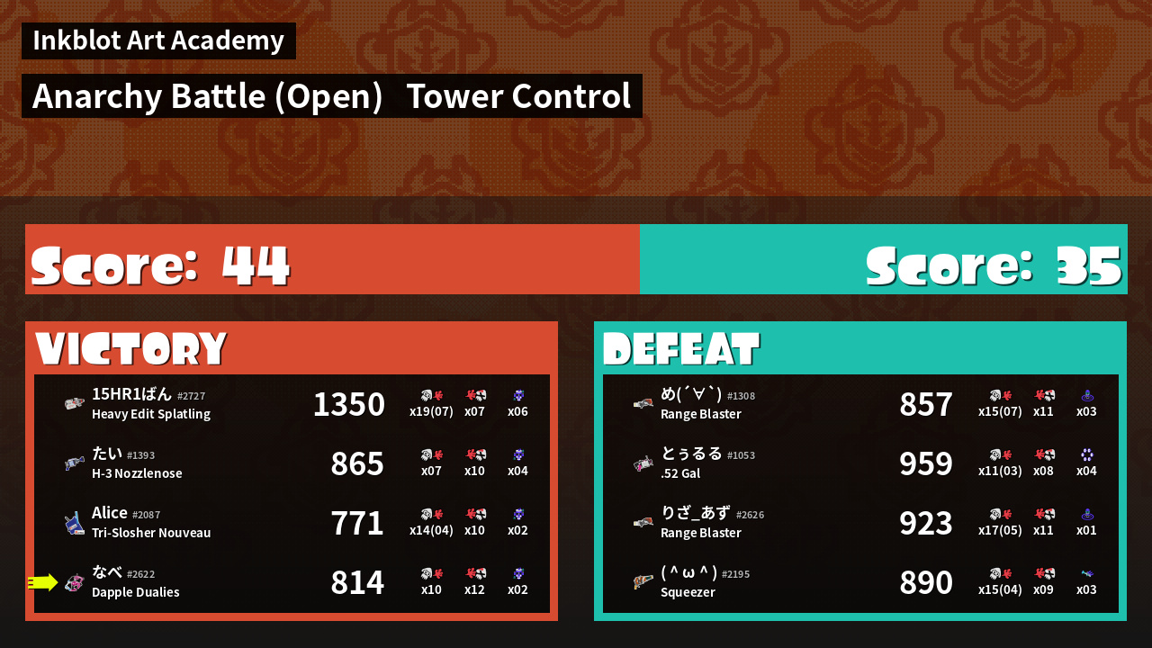 | Mode | Tower Control - Anarchy Battle (Open) | ||