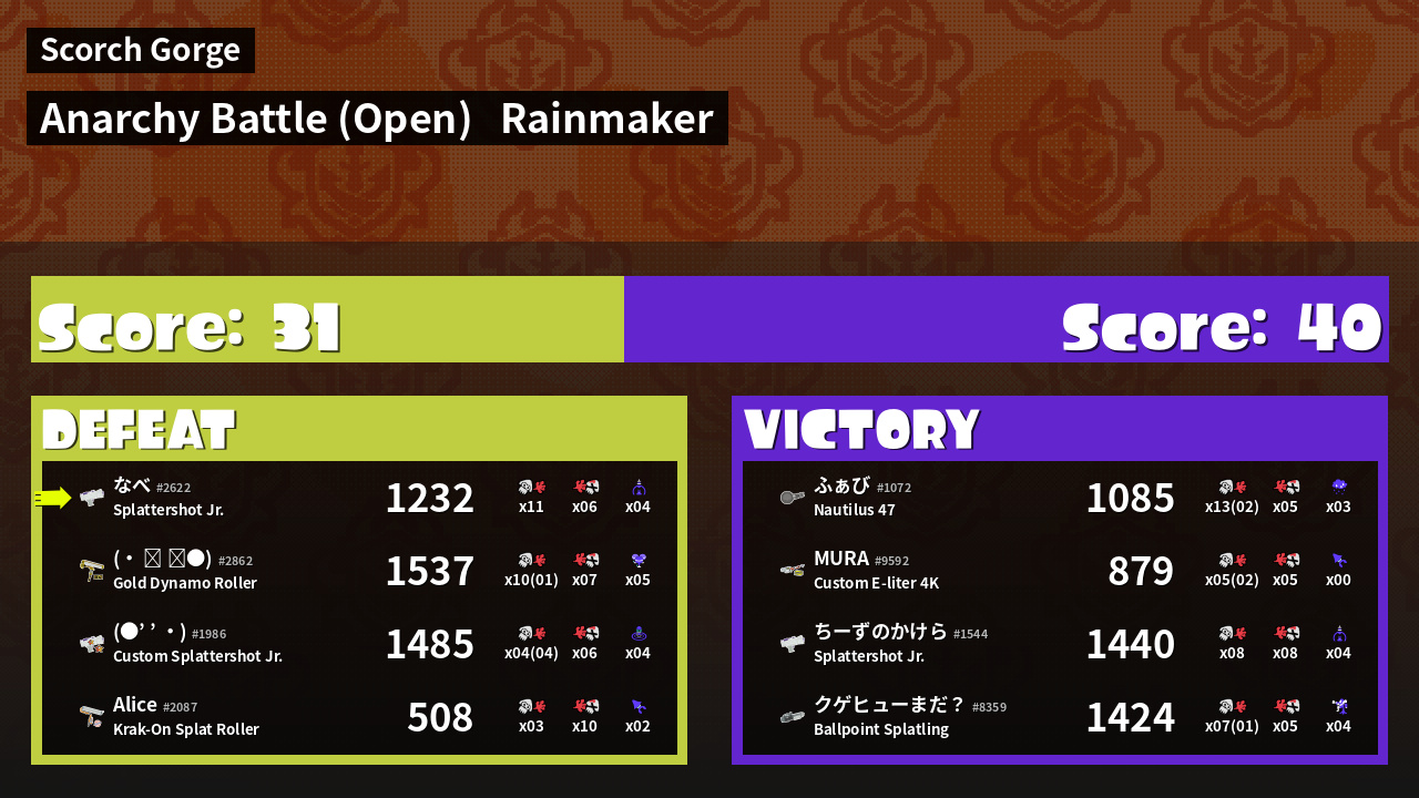 | Mode | Rainmaker - Anarchy Battle (Open) | ||