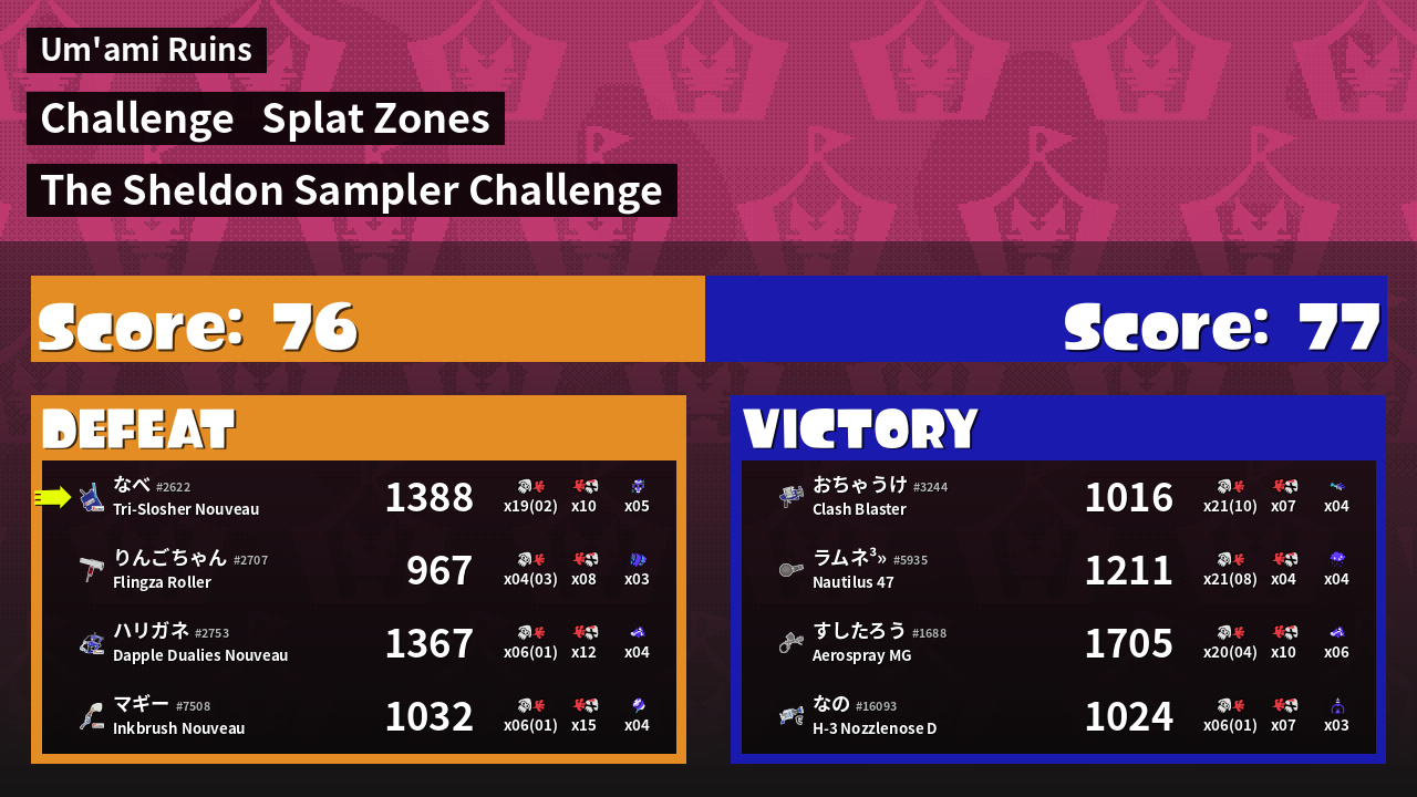 | Medals | #1 Overall Splatter #1 Splat Zone Guard #1 Turf Inker | ||