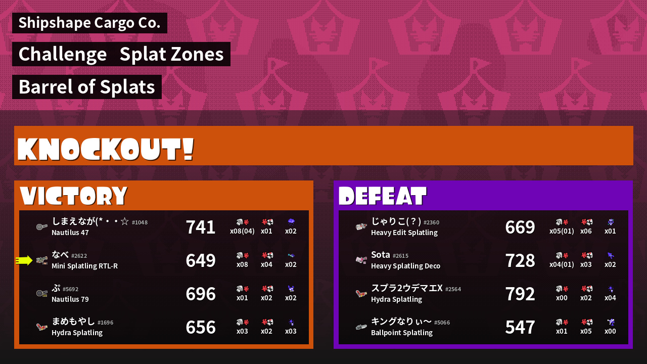 | Challenge | Barrel of Splats Muster as much firepower as you can<br />in this battle of the splatlings! | ||