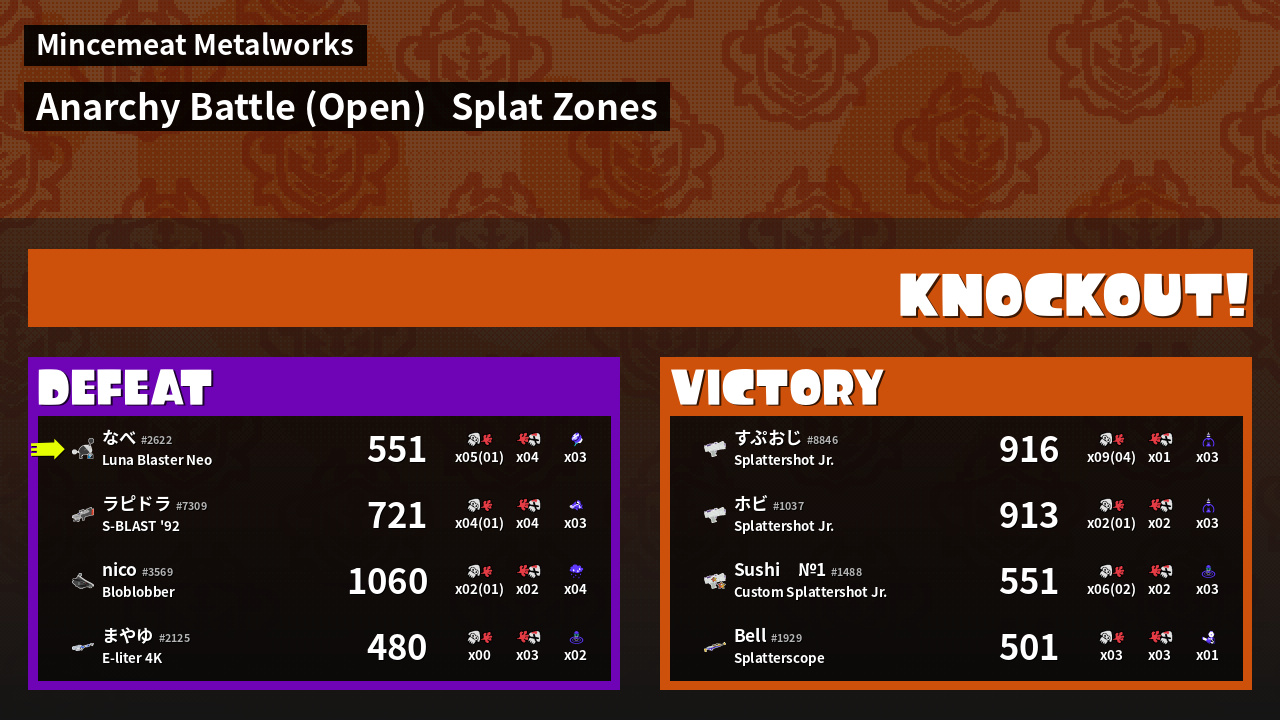 | Mode | Splat Zones - Anarchy Battle (Open) | ||