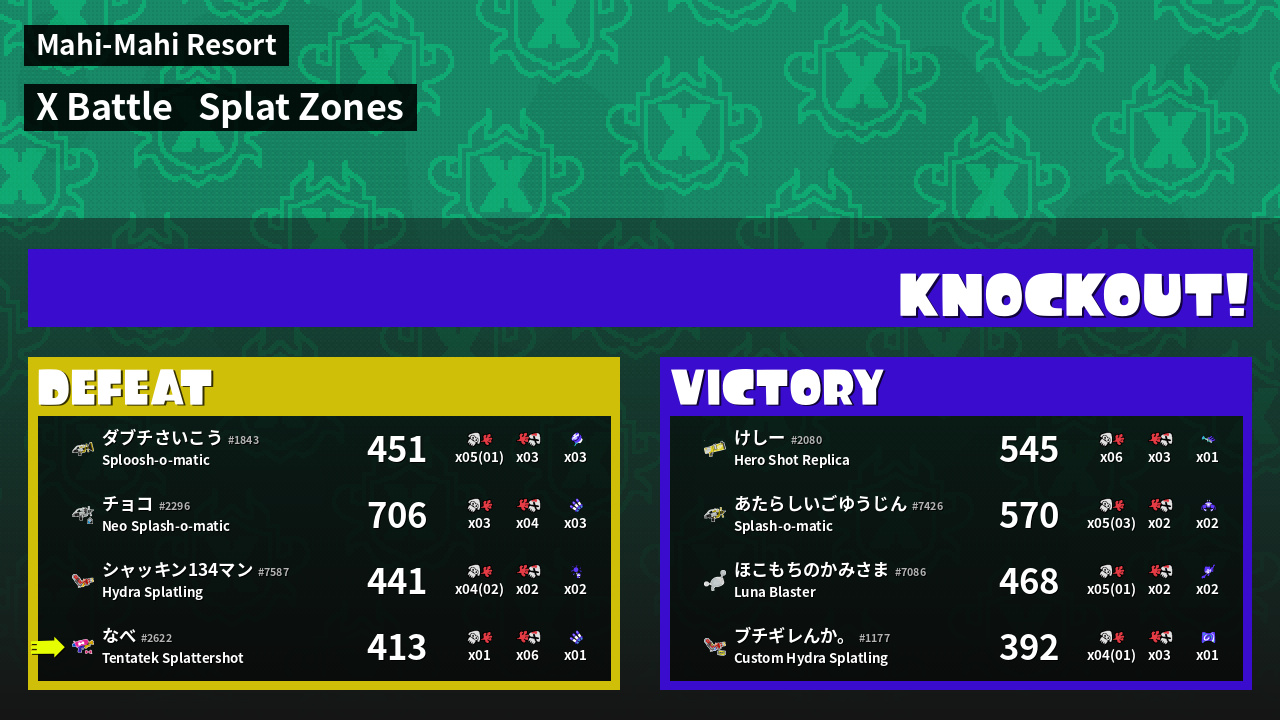 | Weapon | Tentatek Splattershot ( Splat Bomb / Triple Inkstrike) | ||