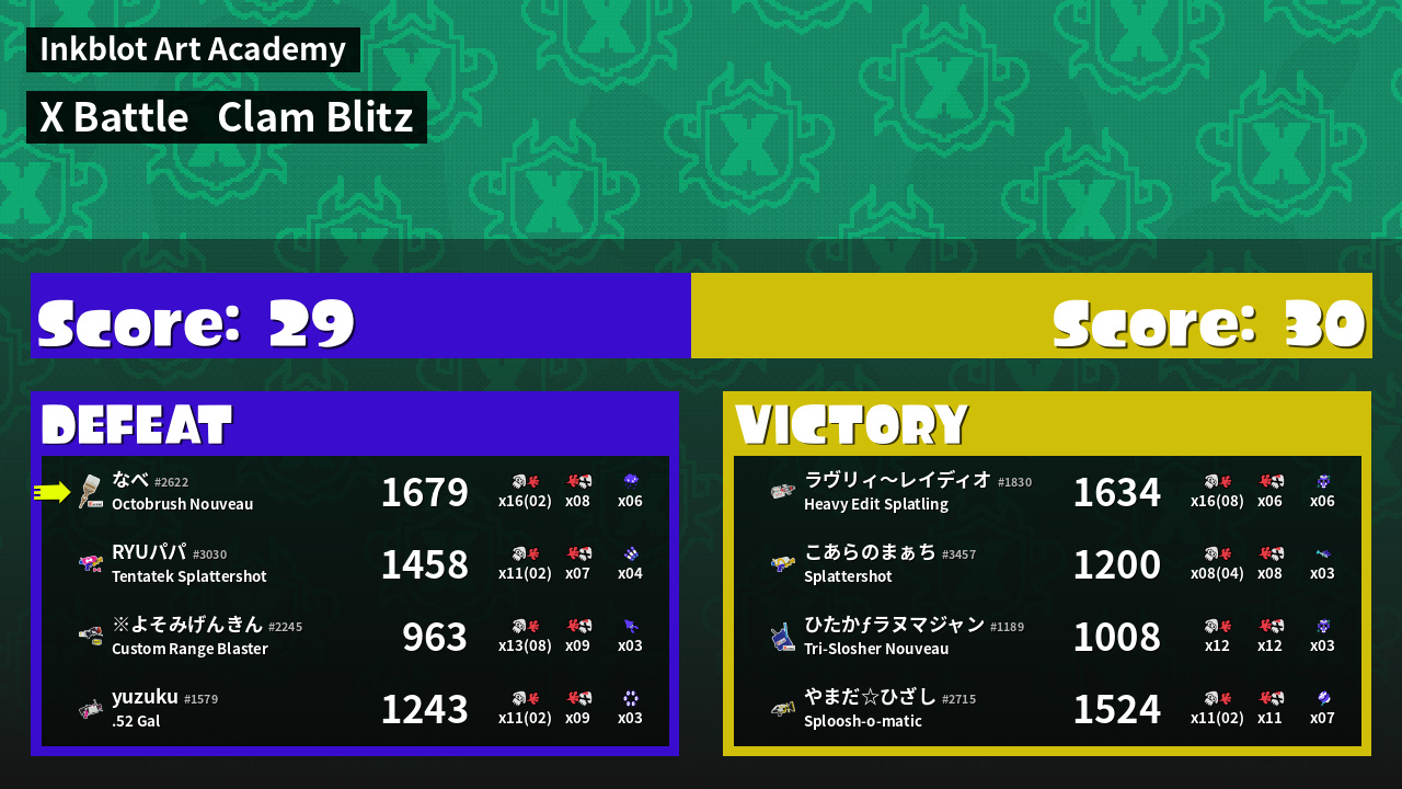 | Medals | #1 Overall Splatter #1 Turf Inker #1 Enemy Splatter | ||