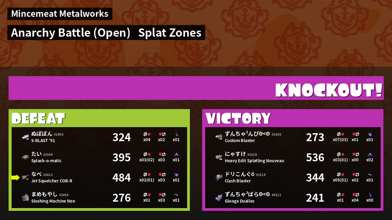 | Mode | Splat Zones - Anarchy Battle (Open) |