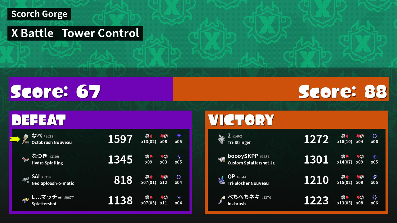 | Mode | Tower Control - X Battle | ||
