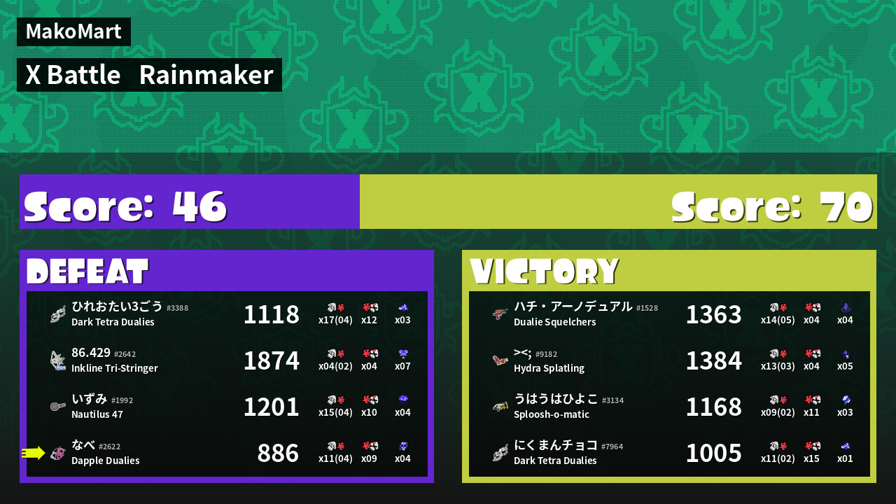 | Medals | #1 Splat Assister #1 Ground Traveler #1 Damage Taker | ||
