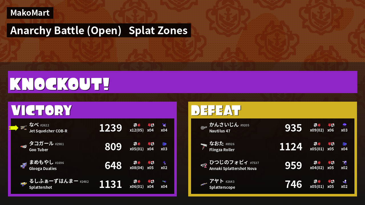 | Mode | Splat Zones - Anarchy Battle (Open) | ||