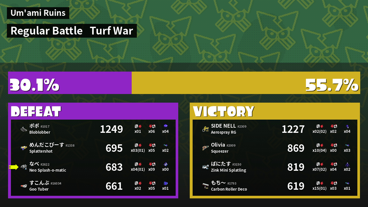 | Mode | Turf War - Regular Battle | ||