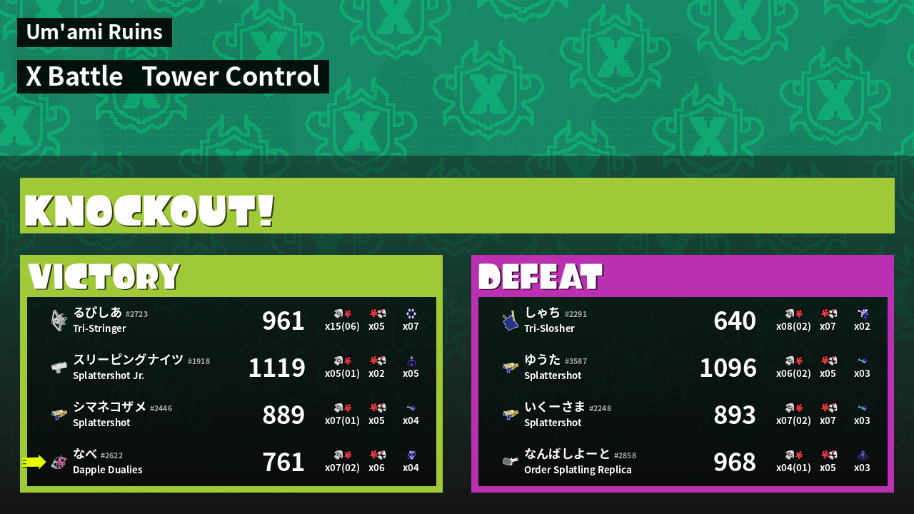| Mode | Tower Control - X Battle | ||