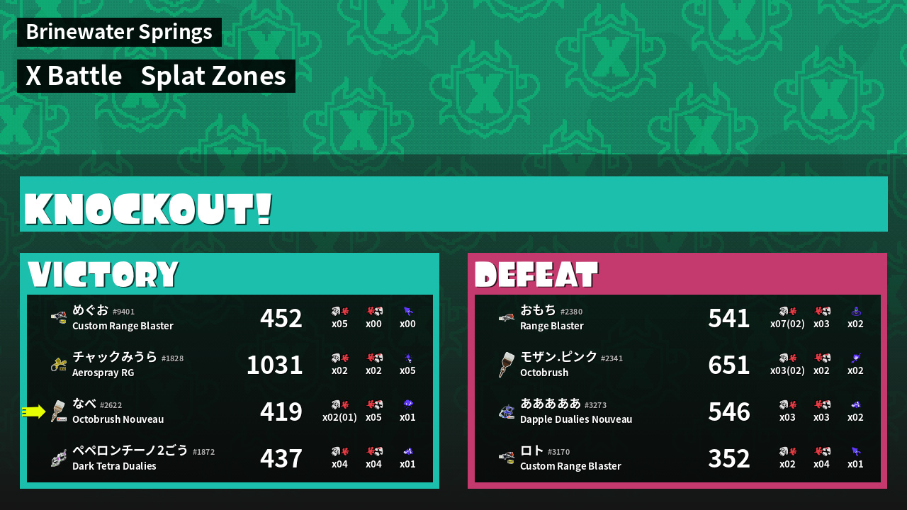 | Mode | Splat Zones - X Battle | ||