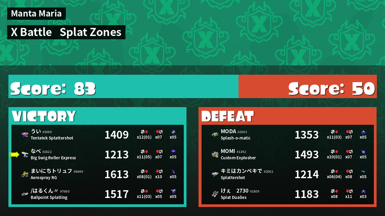 | Medals | #1 Super Jump Spot #1 Splat Assister #1 Ground Traveler | ||