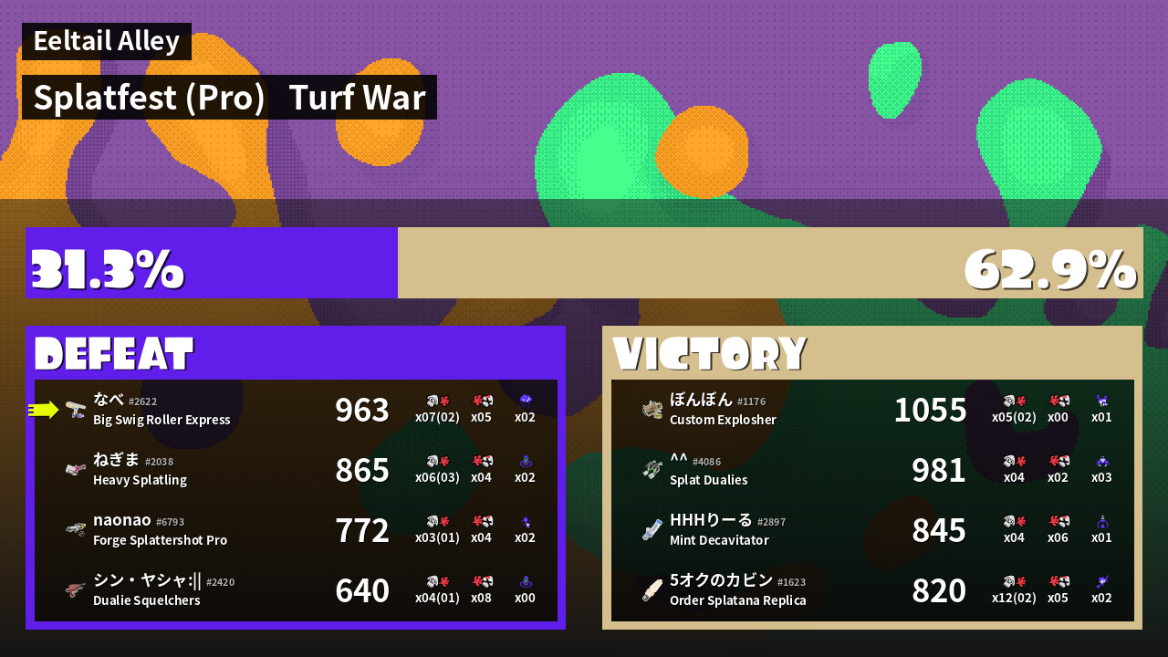 | Mode | Turf War - Splatfest (Pro) | ||