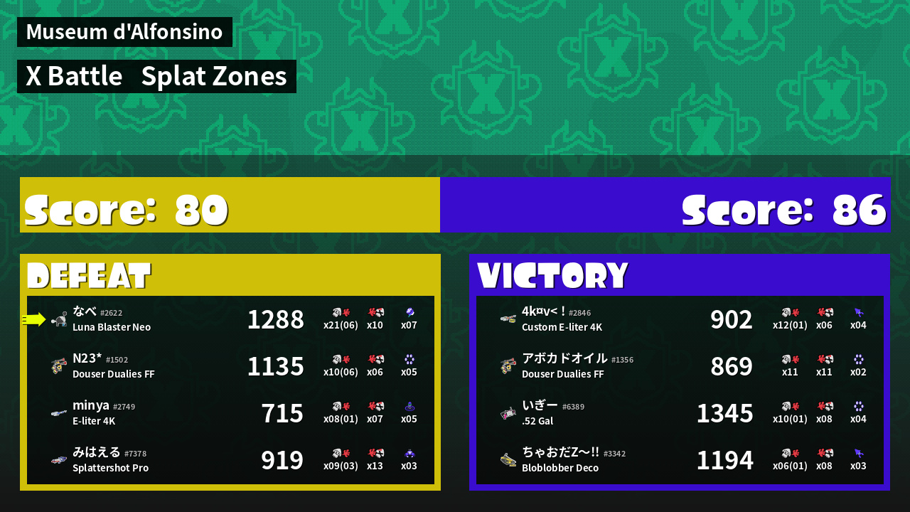 | Mode | Splat Zones - X Battle | ||