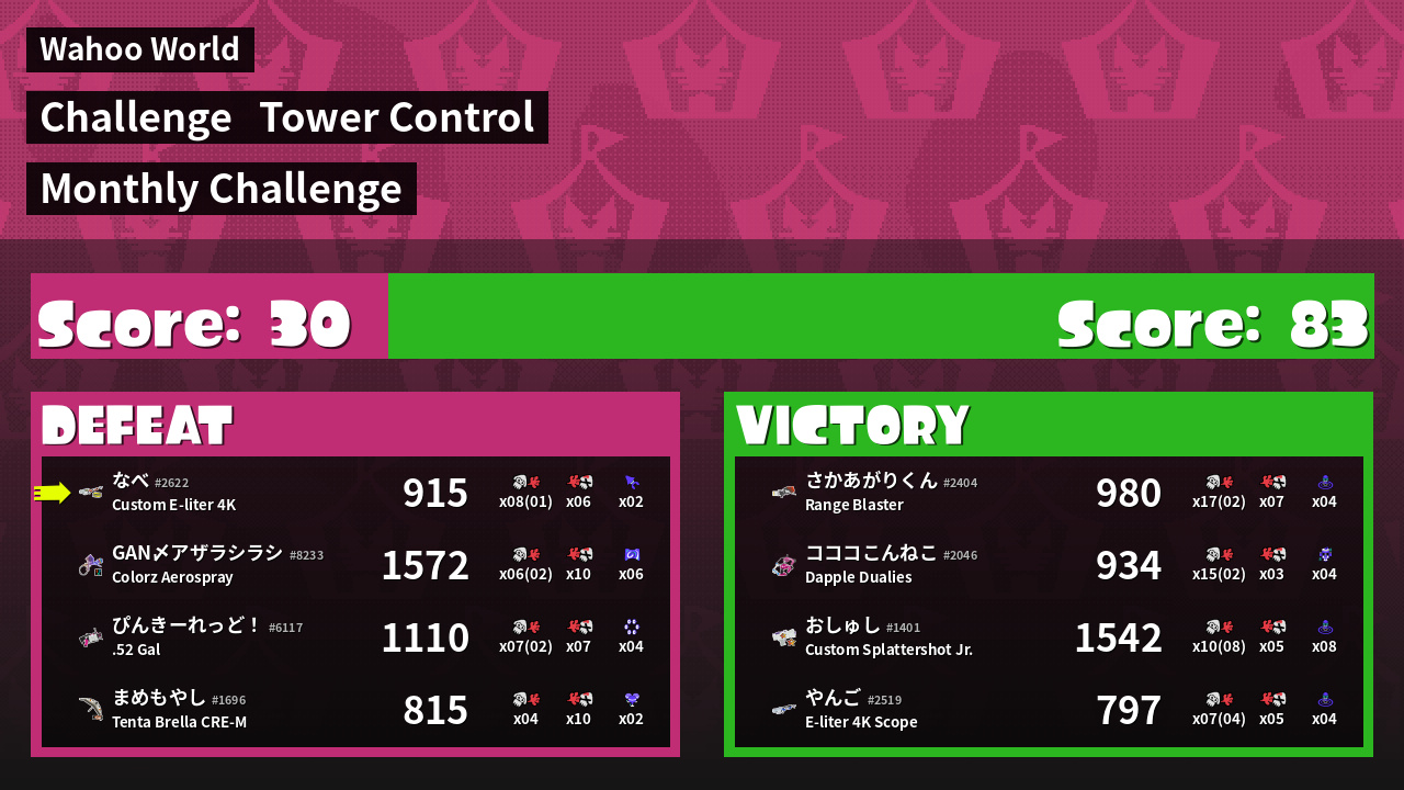 | Medals | #1 Overall Splatter #1 Super Jump Spot #1 Enemy Splatter |