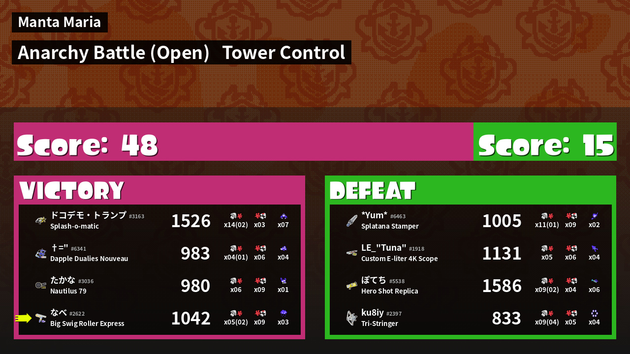 | Mode | Tower Control - Anarchy Battle (Open) | ||