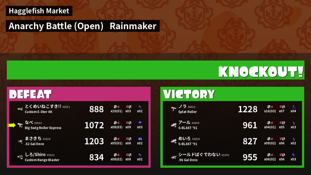 | Mode | Rainmaker - Anarchy Battle (Open) | ||