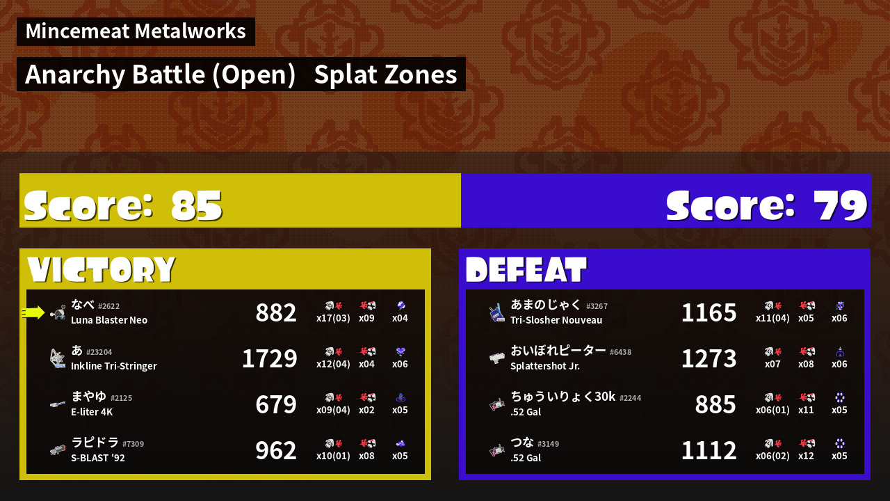 | Mode | Splat Zones - Anarchy Battle (Open) | ||