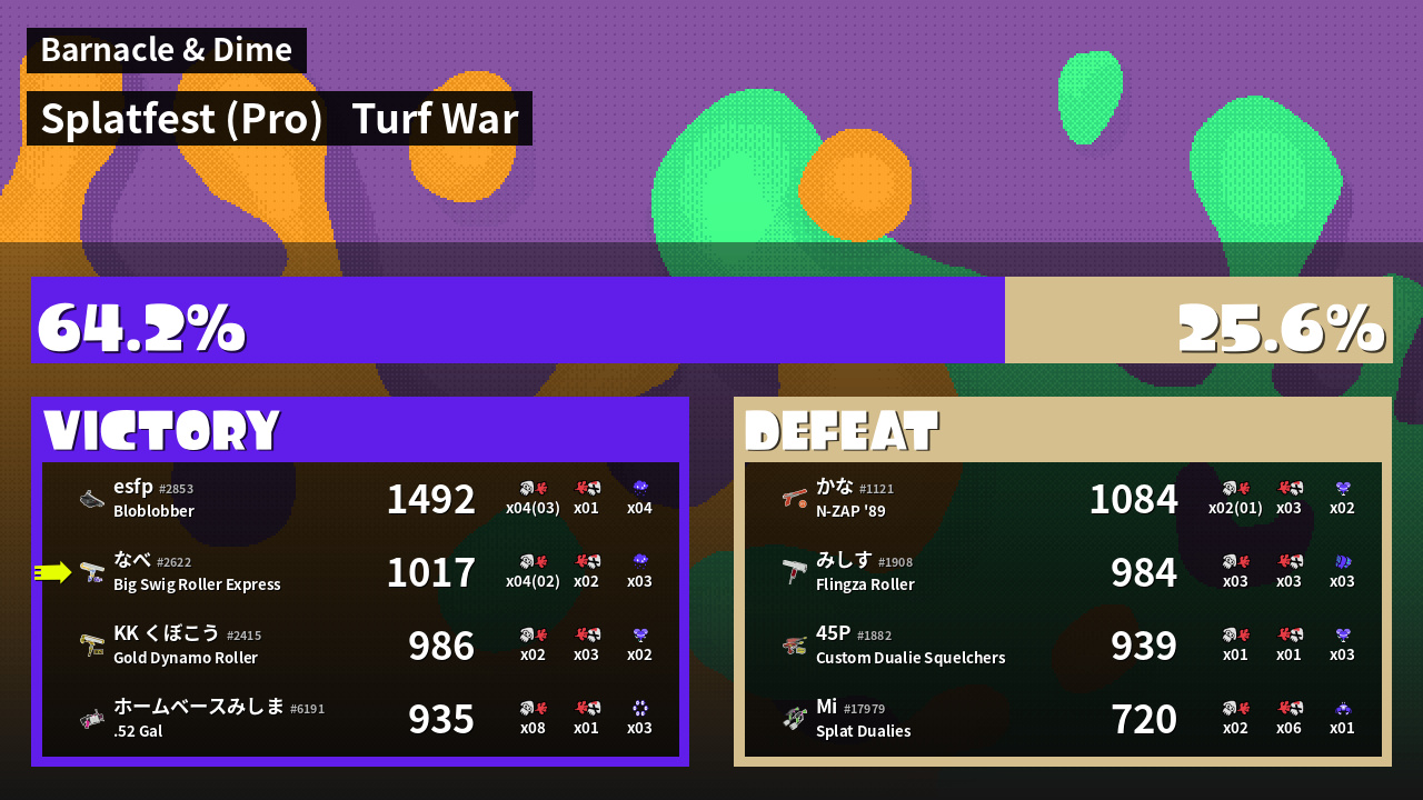 | Weapon | Big Swig Roller Express ( Angle Shooter / Ink Storm) | ||