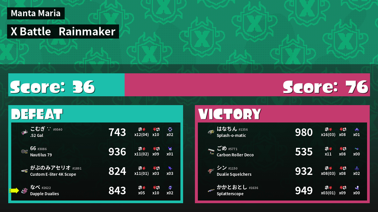| Mode | Rainmaker - X Battle | ||