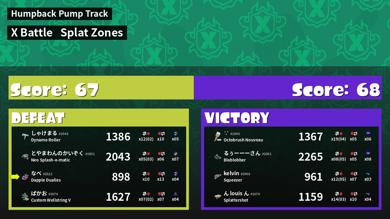 | Medals | #1 Splat Zone Guard #1 Enemy Splatter #1 Splat Zone Hero | ||