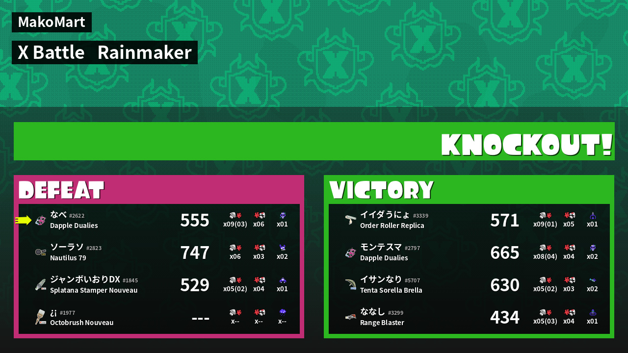 | Mode | Rainmaker - X Battle | ||