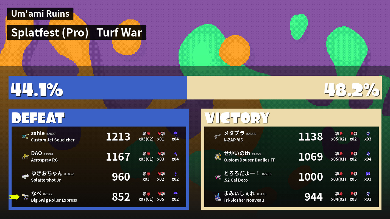 | Mode | Turf War - Splatfest (Pro) | ||
