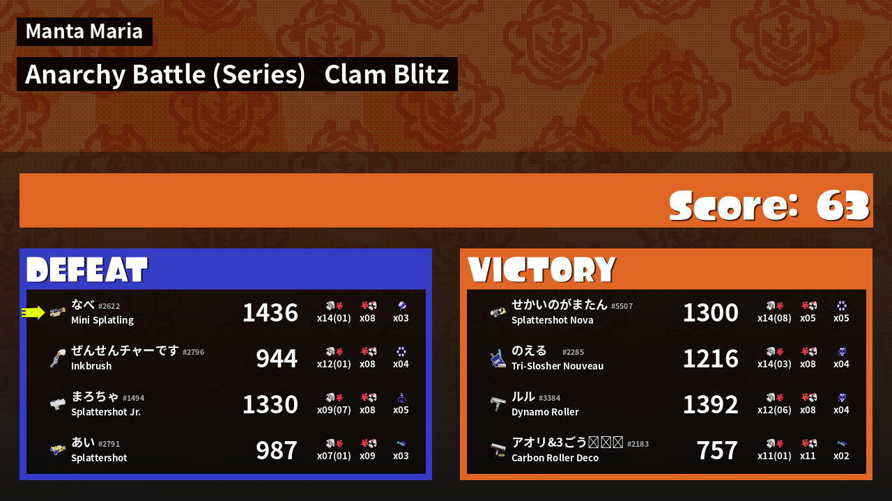 | Mode | Clam Blitz - Anarchy Battle (Series) | ||
