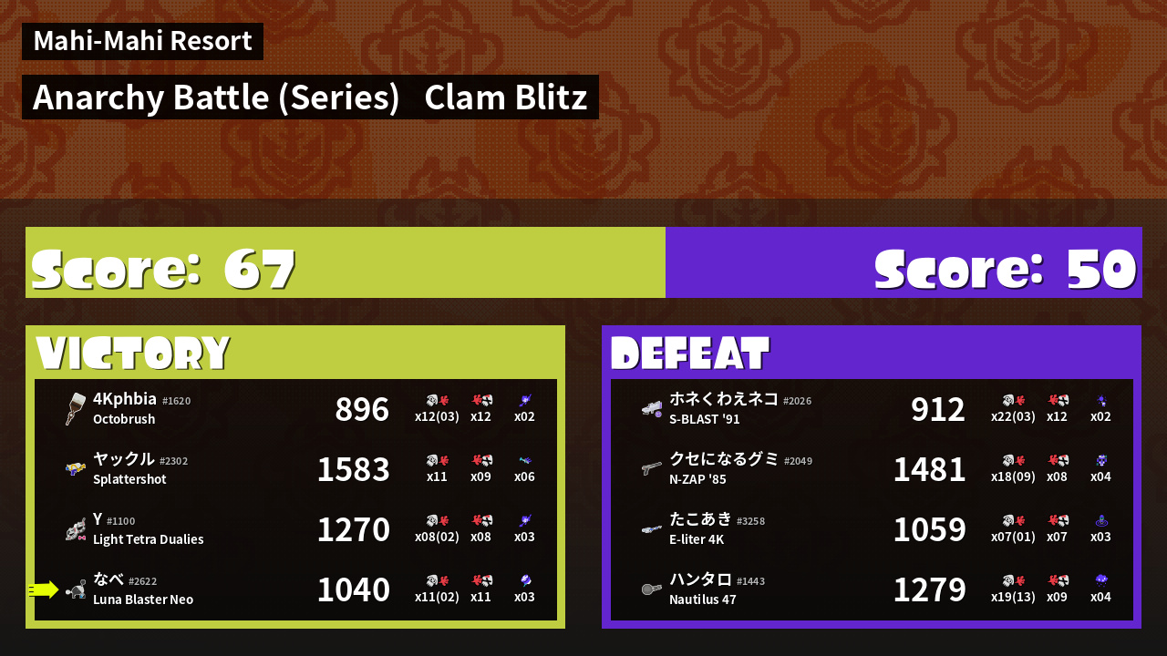 | Mode | Clam Blitz - Anarchy Battle (Series) | ||