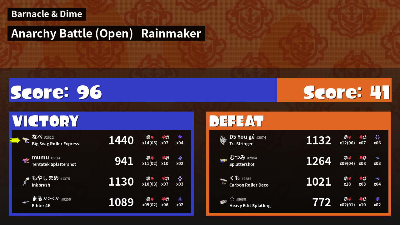 | Mode | Rainmaker - Anarchy Battle (Open) | ||