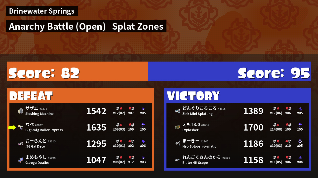 | Mode | Splat Zones - Anarchy Battle (Open) |