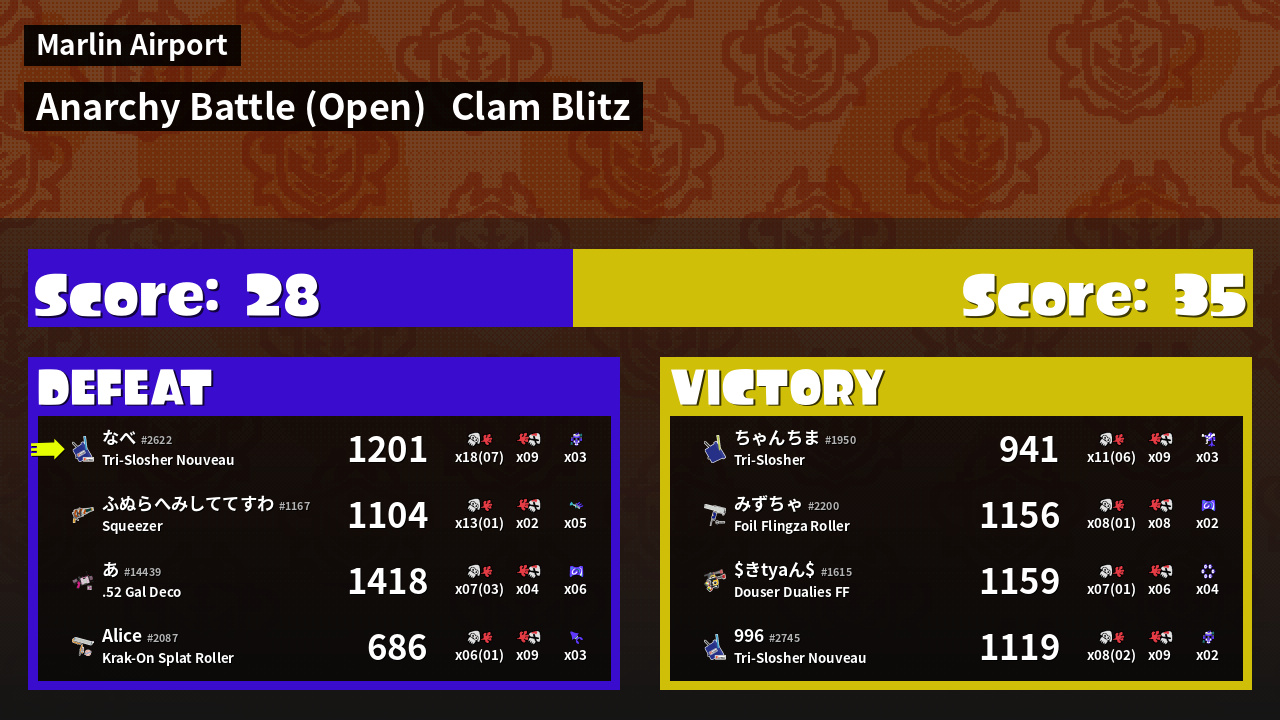 | Mode | Clam Blitz - Anarchy Battle (Open) | ||