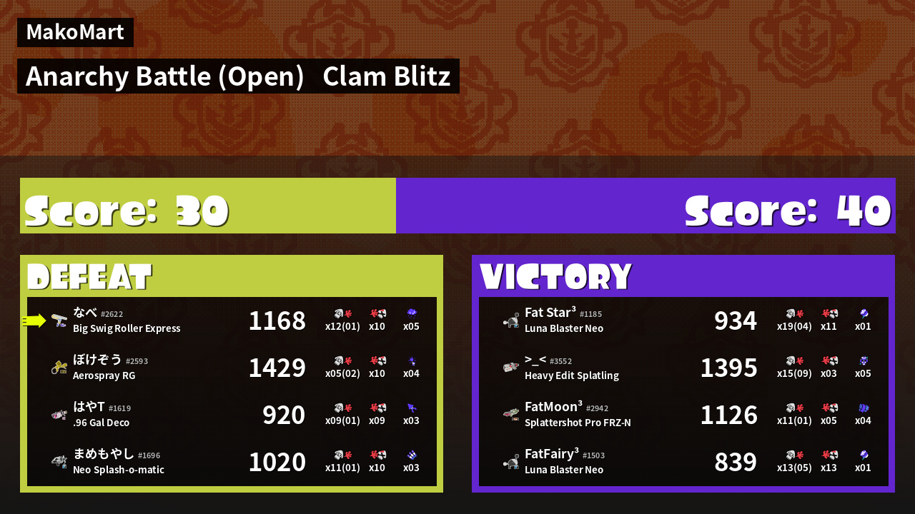 | Mode | Clam Blitz - Anarchy Battle (Open) |