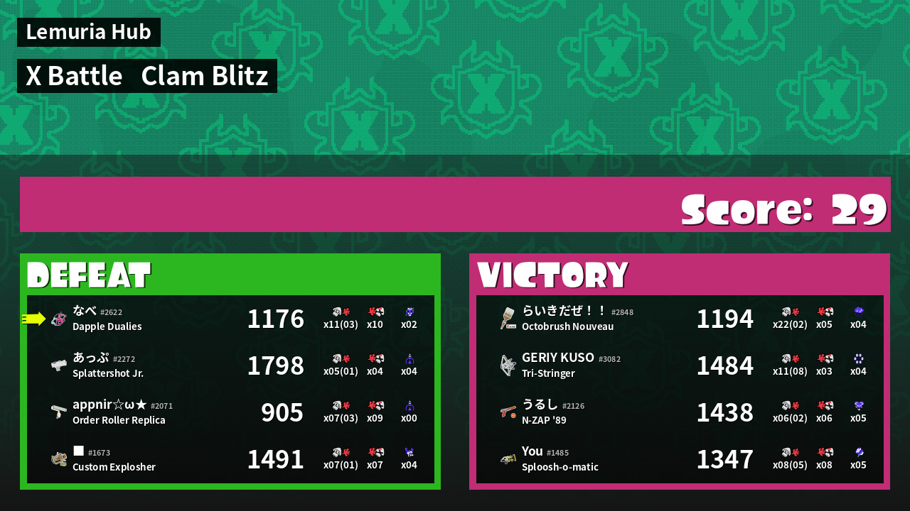 | Mode | Clam Blitz - X Battle | ||